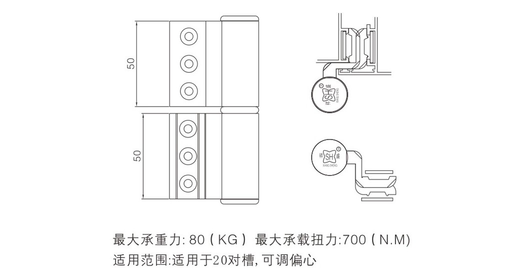 適用于20槽型材上,可調(diào)偏心,每對最大承重80(KG),最大承載扭力700(N.M)
