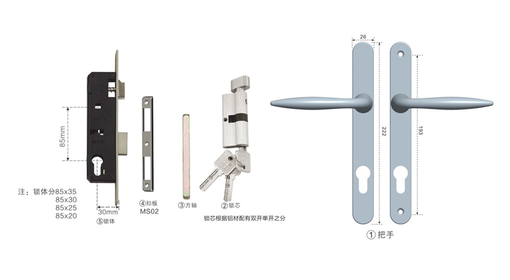 平開門鎖,實(shí)用簡潔大方。鎖芯、扣板可按客戶需求選配。